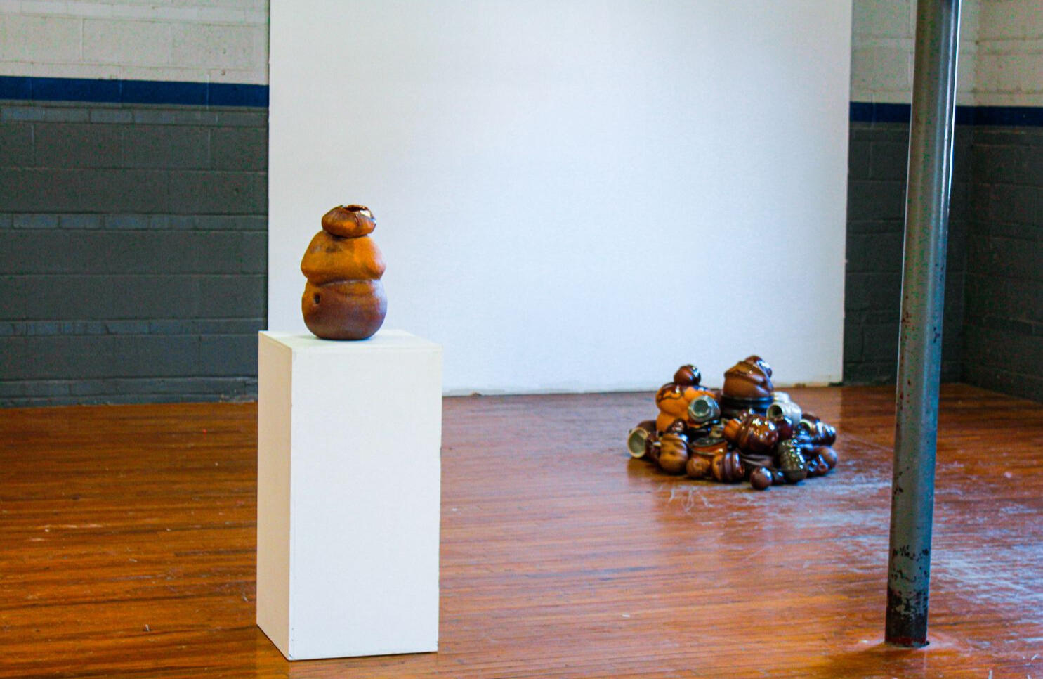 The Space I Use, 2024This work initially started with the idea of bodies as vessels for perception, that being our gaze and the gaze of everyone around us. This work plays with the idea of body dysmorphia and how it can affect our self-perception and our awareness about the space that we use.The pile of ceramic vessels is titled “The Space I Use”; it explores the idea of using more space than we use when we’re being perceived by ourselves and what others think about us. Although there are multiple ceramic vessels, they exist as one entity, a self-reflection of spewing out. Each vessel can be thought of as individual experiences that shape one’s self-perception. The pile also plays with the idea of sensitivity, as it is precarious and could shift depending on the viewers' movements.